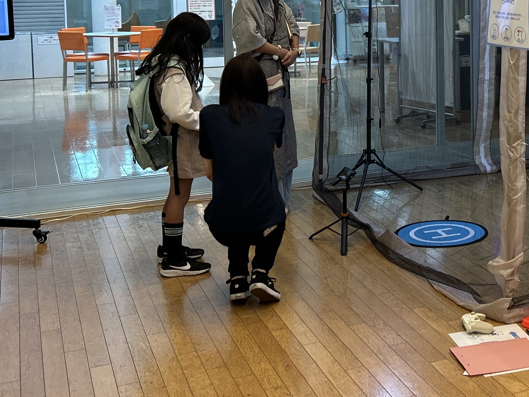 ・ドローンの風でお菓子を釣り上げる体験